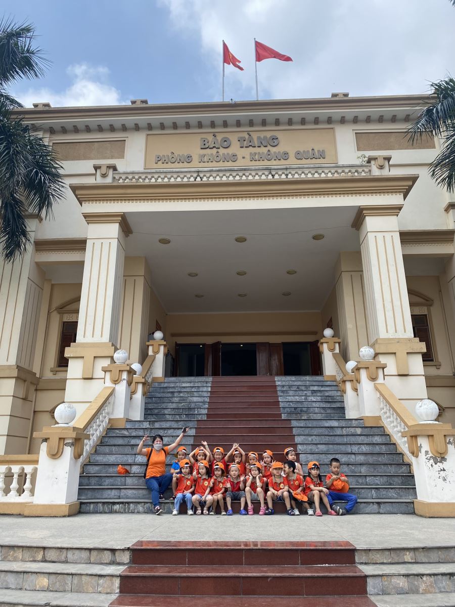 Từ rất sớm, ô tô và hướng dẫn viên của Công ty du lịch Ấn Tượng đón các cô giáo cùng các bạn nhỏ tại trường. Đúng 7h30, đoàn xuất phát đi tham quan bảo tàng Phòng Không Không Quân. Đây là nơi lưu giữ những hình ảnh,tư liệu, hiện vật minh chứng cho quá trình ra đời, xây dựng, chiến đấu, trưởng thành và chiến thắng của bộ đội phòng không, không quân Việt Nam. Tại đây, các bạn nhỏ đã được nghe cô thuyết minh viên của bảo tàng cung cấp rất nhiều thông tin, cũng như được xem những bộ sưu tập hiện vật vũ khí độc đáo về 4 lực lượng của bộ đội Phòng không – Không quân là: máy bay, pháo cao xạ, tên lửa và ra-đa. Các bạn vô cùng xúc động khi được tận mắt thấy chiếc trực thăng Mi – 4 số hiệu 151D đã nhiều lần chở Bác Hồ đi công tác, hay máy bay tiêm kích MIG – 21 F96 của đoàn 921 anh hùng, đơn vị đã bắn rơi 137 máy bay Mỹ.