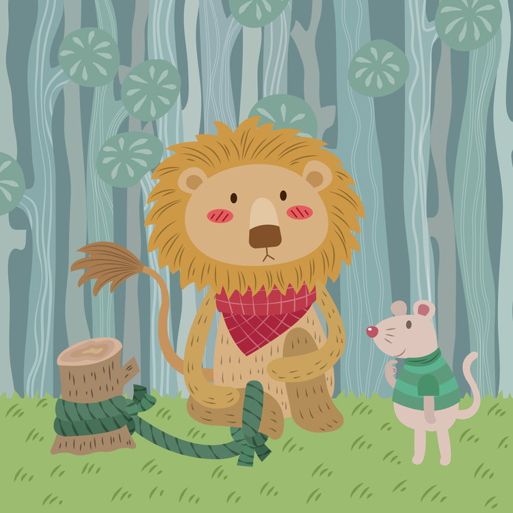 Truyện mở đầu bằng hình ảnh chúa tể sơn lâm đang chợp mắt dưới tán cây xanh mát. Bỗng từ đâu một chú chuột nhắt xuất hiện làm phiền giấc ngủ sư tử. Sư tử thức giấc và khá tức giận, lập tức vồ ngay lấy chuột nhắt. Chuột bèn van xin sư tử tha chết: