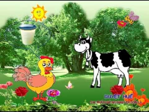 Gà chạy đi tìm Bò mẹ xin nó ít sữa, để bà chủ chưng lên thành bơ, bơ ấy tôi đem xoa cổ Gà Trống, nó bị hóc một hạt đậu rồi.