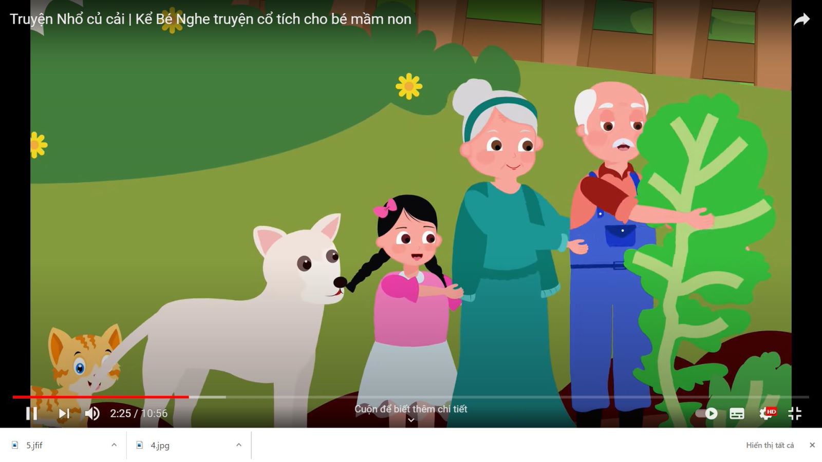_ Cháu gái ơi! Cháu gái ơi! Lại đây giúp ông bà nhổ củ cải với nào!