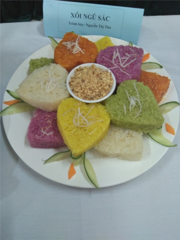 Để làm món xôi ngũ sắc ngon và đẹp mắt thì phải rất công phu vì mỗi màu xôi lại phải đồ xôi riêng một nồi.