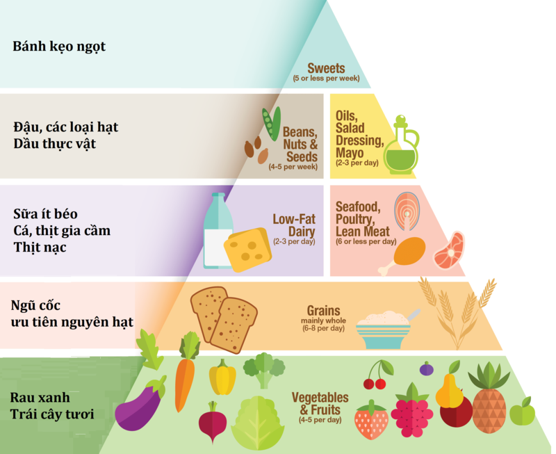 Thức ăn tinh bột: Có mặt trong 3 bữa chính và một số bữa phụ của bé: gồm cơm, khoai tây, khoai lang, mỳ và những thức ăn từ tinh bột như bánh mỳ, bánh ngọt….
