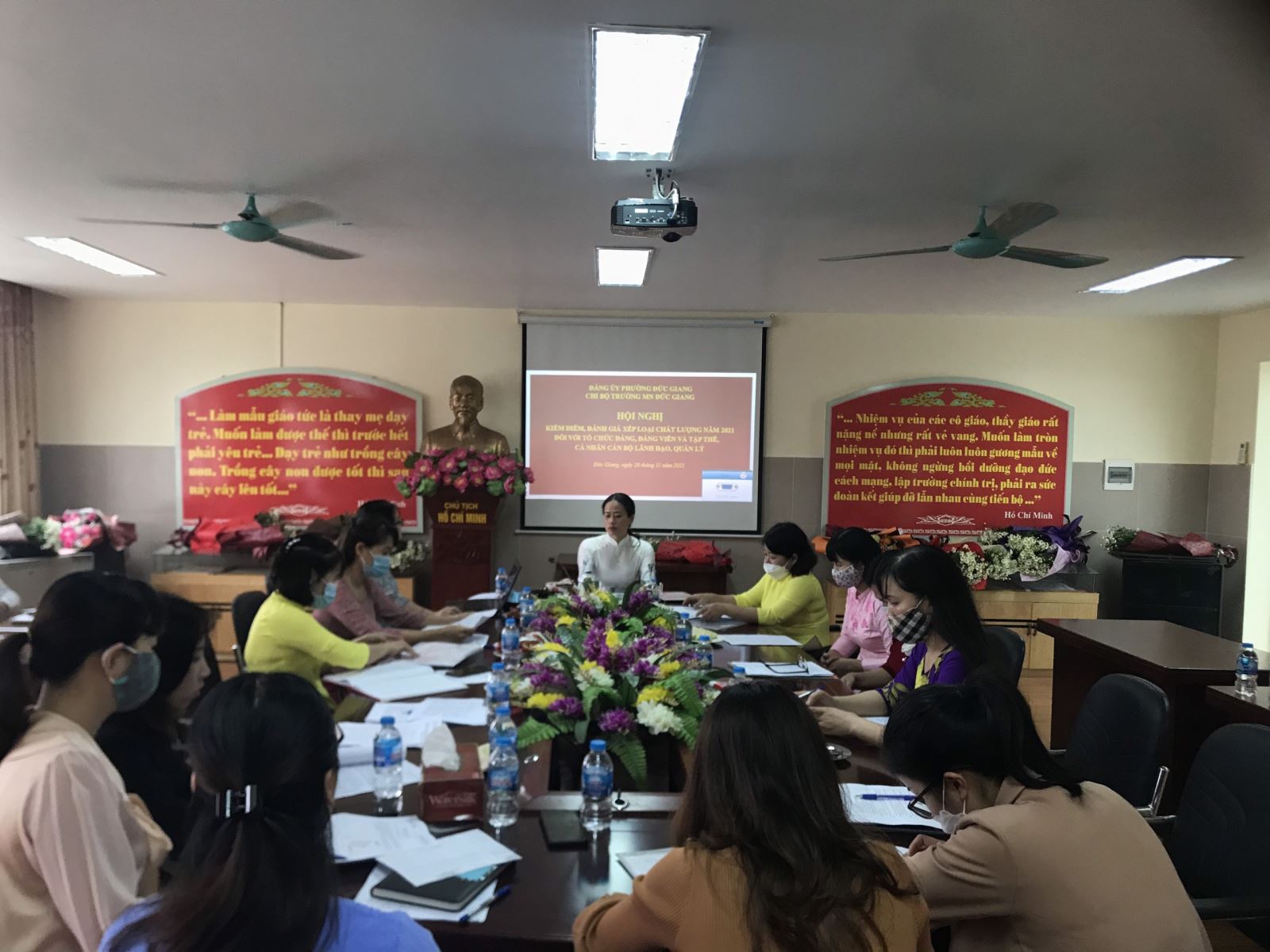 Sáng ngày 20/11/2021, Chi bộ trường Mầm non Đức Giang tổ chức Hội nghị kiểm điểm đánh giá, xếp loại tổ chức đảng, đảng viên và tập thể, cá nhân cán bộ lãnh đạo, quản lý năm 2021.