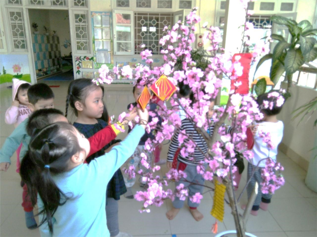 Còn ở trường bé, cô giáo đã cùng bé và các bạn làm đẹp hơn không gian lớp học của mình như: chăng đèn, kết hoa, vẽ tranh, làm thiệp, làm những món quà nhỏ tặng người thân... Ngày 19/1/2018, các cô đã dạy các bé làm câu đố, quả cầu trang trí lớp đón tết. Các bé phấn khởi, hăng say, tạo ra những sản phẩm đẹp để cùng cô trang trí cho lớp học của mình. Sau đây là một số hình ảnh của tiết học: