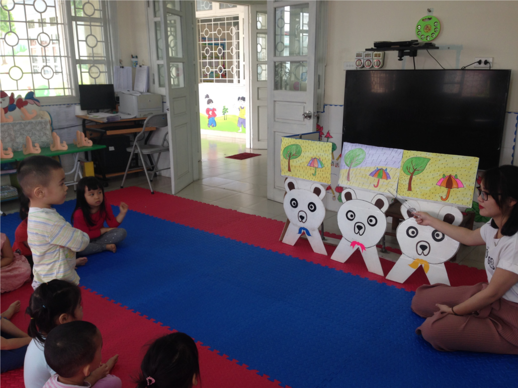 Cô và trẻ hát bài “Cho tôi đi làm mưa với”