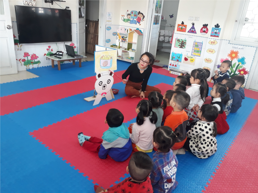 Cô cho trẻ xem video để gây hứng thú cho trẻ