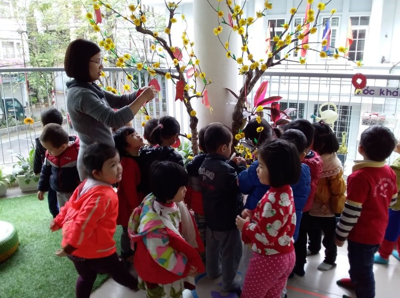 Cô cùng trẻ trò chuyện về tết nguyên đán