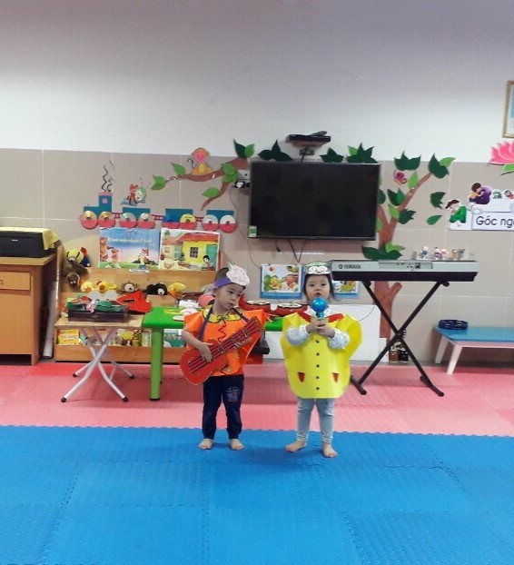 Dưới đây là một số hình ảnh của các bé trong tiết học âm nhạc: