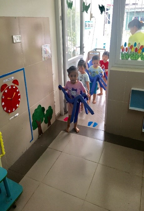 Trẻ đi lấy ghế theo đúng trật tự nội vụ