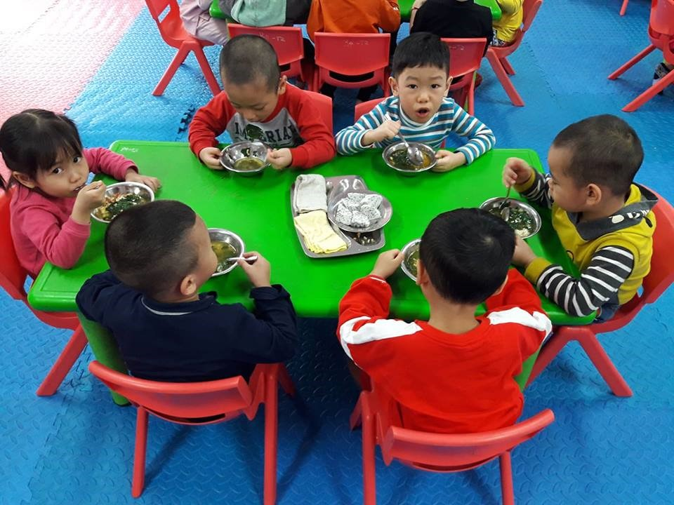 Hình ảnh toàn bộ lớp học , ngồi ăn rất gọn gàng, ngay ngắn.