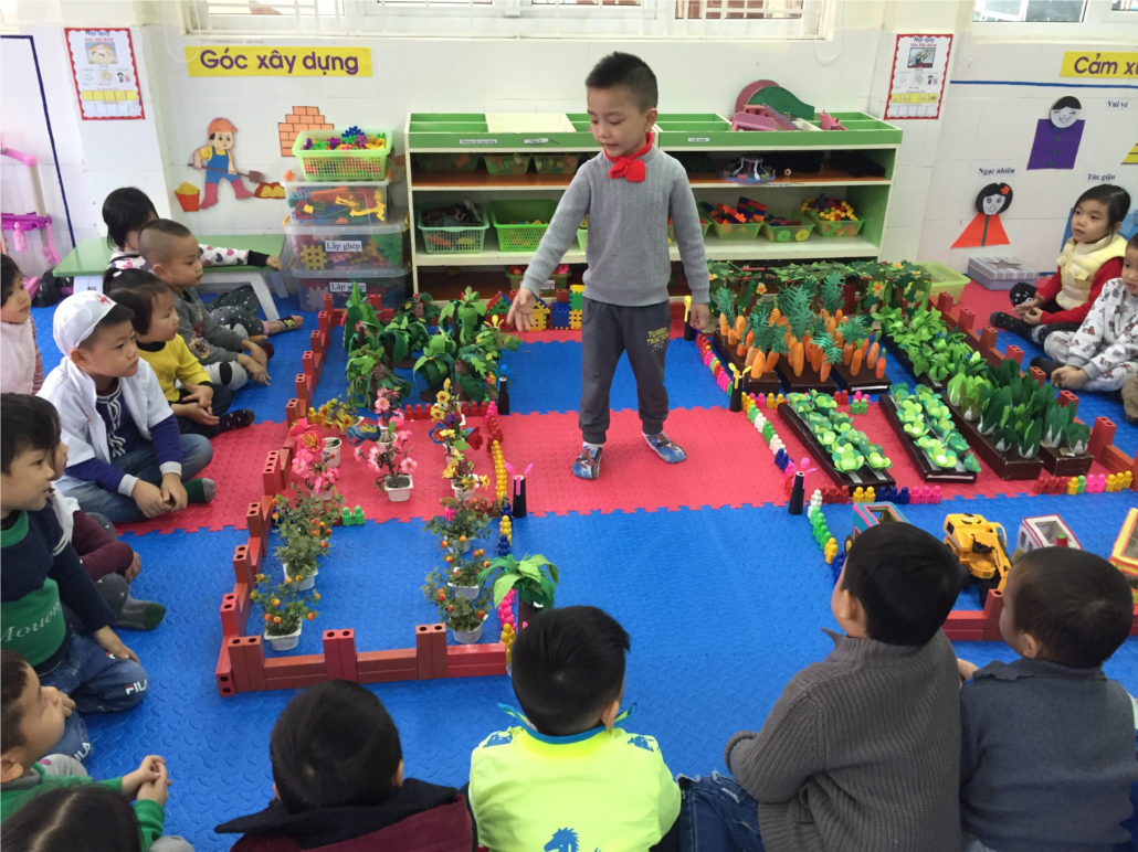 Trẻ biết giới thiệu cho các bạn về công trình của mình