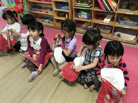 Hình ảnh của các bạn lớp Mẫu giáo B4 trong giờ “Rèn kỹ năng lồng gối cho trẻ”:
