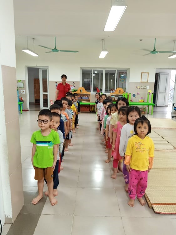 Trẻ xếp hàng chuẩn bị lên giường ngủ