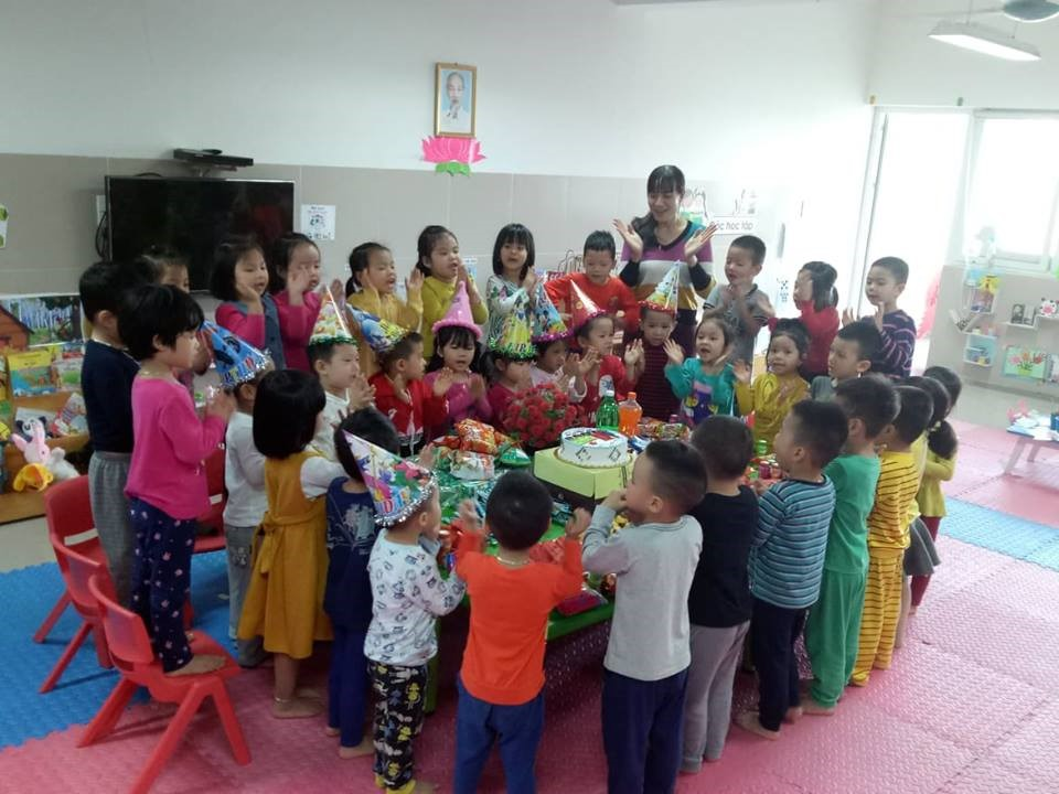 Cô và các bạn quây quần hát chúc mừng sinh nhật các bạn trong tháng 10,11,12.