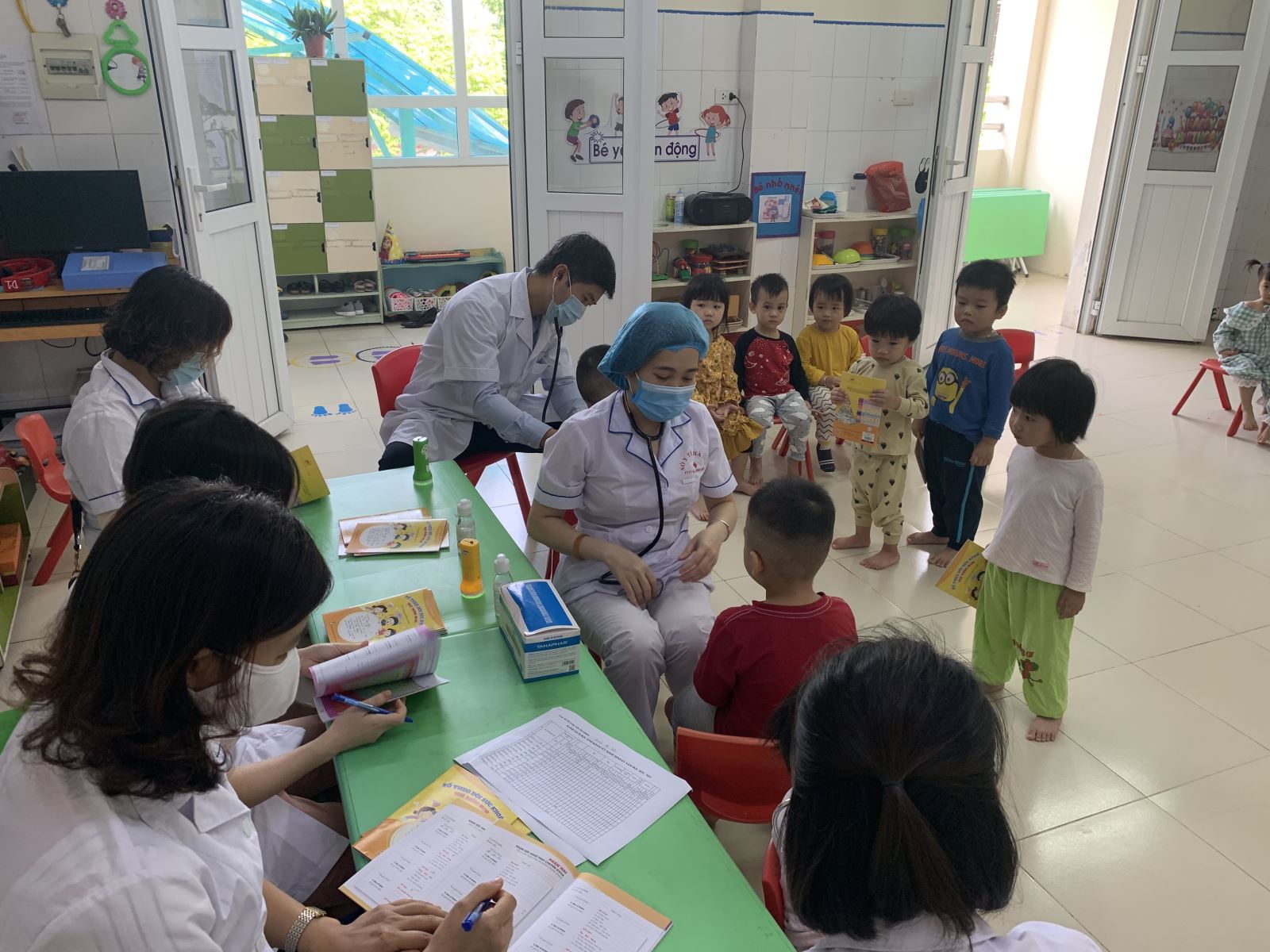 Khám sức khoẻ định kỳ cho các cháu là hết sức thiết thực và ý nghĩa thông qua việc khám sức khỏe định kỳ cho trẻ đã góp phần không nhỏ vào việc nâng cao nhận thức cho phụ huynh về ý thức phòng chống một số bệnh thường gặp ở lứa tuổi mầm non . Hôm nay, ngày 16/10/2020 trường mầm non Đức giang tổ chức đợt khám sức khỏe định kỳ cho các bé trong nhà trường với những nội dung sau: Cân nặng, chiều cao, khám tai, mắt, mũi, họng, kiểm tra tim và một số bệnh liên quan đến đường hô hấp, da liễu...