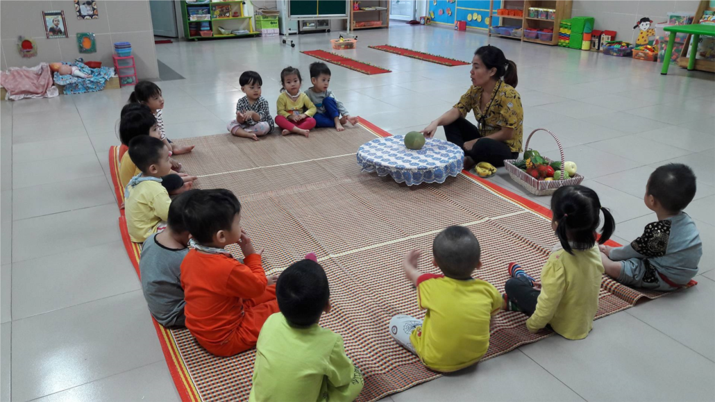 Cô và các bé đang tìm hiểu về một số loại quả: chôm chôm,