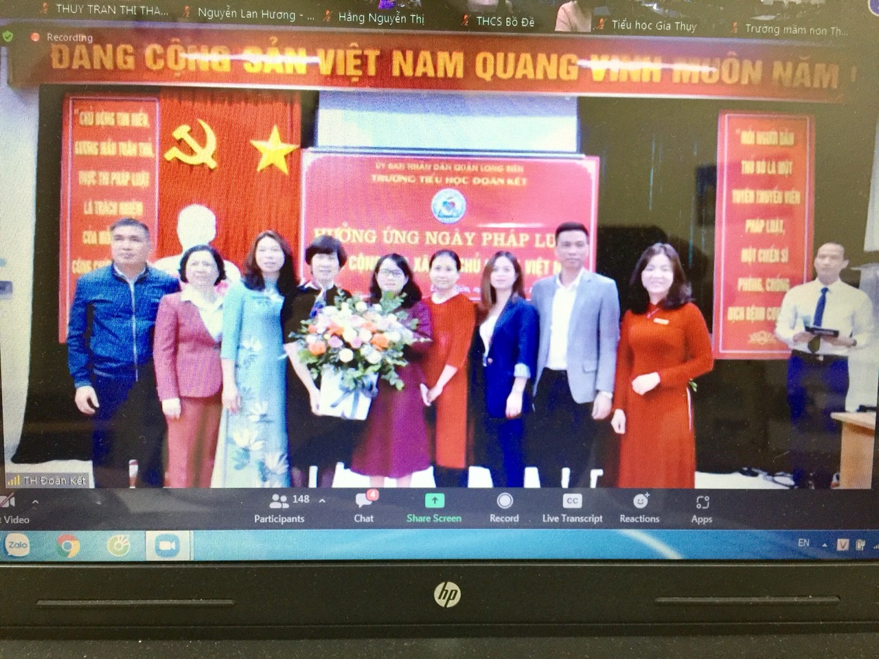 Sáng nay, 8h30 ngày 01/11/2021 Ban Chi ủy, Ban giám hiệu, Chủ tịch công đoàn, Bí thư đoàn thanh niên trường mầm non Đức Giang tham gia Hưởng ứng “Ngày pháp luật nước Cộng hòa XHCN Việt Nam” năm 2021 do Phòng giáo dục & Đào tạo quận Long Biên tổ chức qua Zoom tại điểm cầu trường tiểu học Đoàn Kết.
