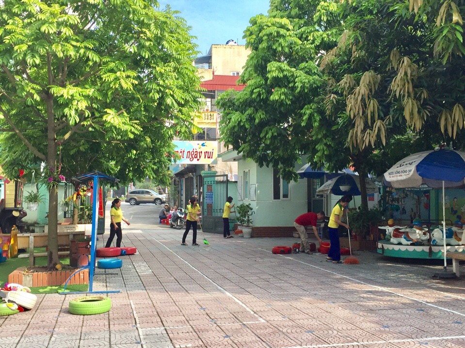 Trên cơ sở đó, tất cả các phòng học, phòng làm việc và khuôn viên của nhà trường đã tổ được chức vệ sinh nhà cửa, đồ dùng, đồ chơi thu gom, vận chuyển rác tới các thùng rác đặt đúng nơi quy định. Tiếp đó, các cán bộ, giáo viên, nhân viên nhà trường tiến hành vệ sinh môi trường khơi thông cống rãnh, phát quang bờ bụi rậm, làm sạch nhà vệ sinh...